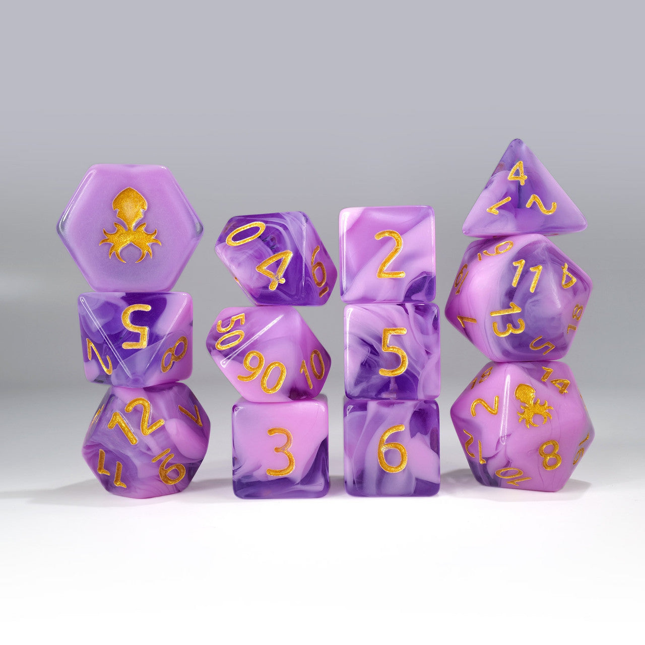 Good thing they don’t smell as good as they look! This 12pc Purple and Pink dice set fits right in line with our new Gummi Candies line.