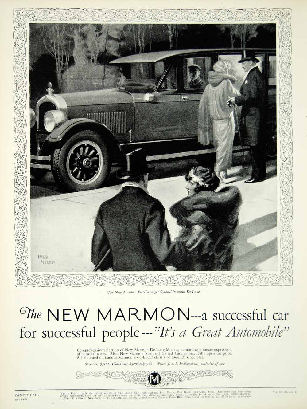 This is an original 1925 black and white print ad for the new Marmon Five-Passenger Sedan Limousine DeLuxe.