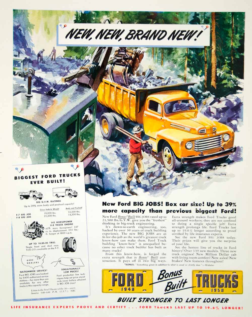 This is an original 1948 color print ad for Ford Trucks.