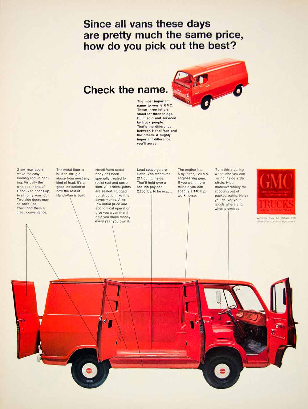 This is an original 1966 color print ad for the GMC Handi-Van.