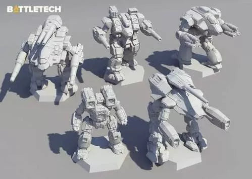 Unleash the Clan Heavy Star on your enemies! Stone Rhino, Supernova, Marauder IIC, Warhammer IIC, and Hunchback IIC (no assembly required) along with five MeechWarrior pilot cards and five Alpha Strike cards.