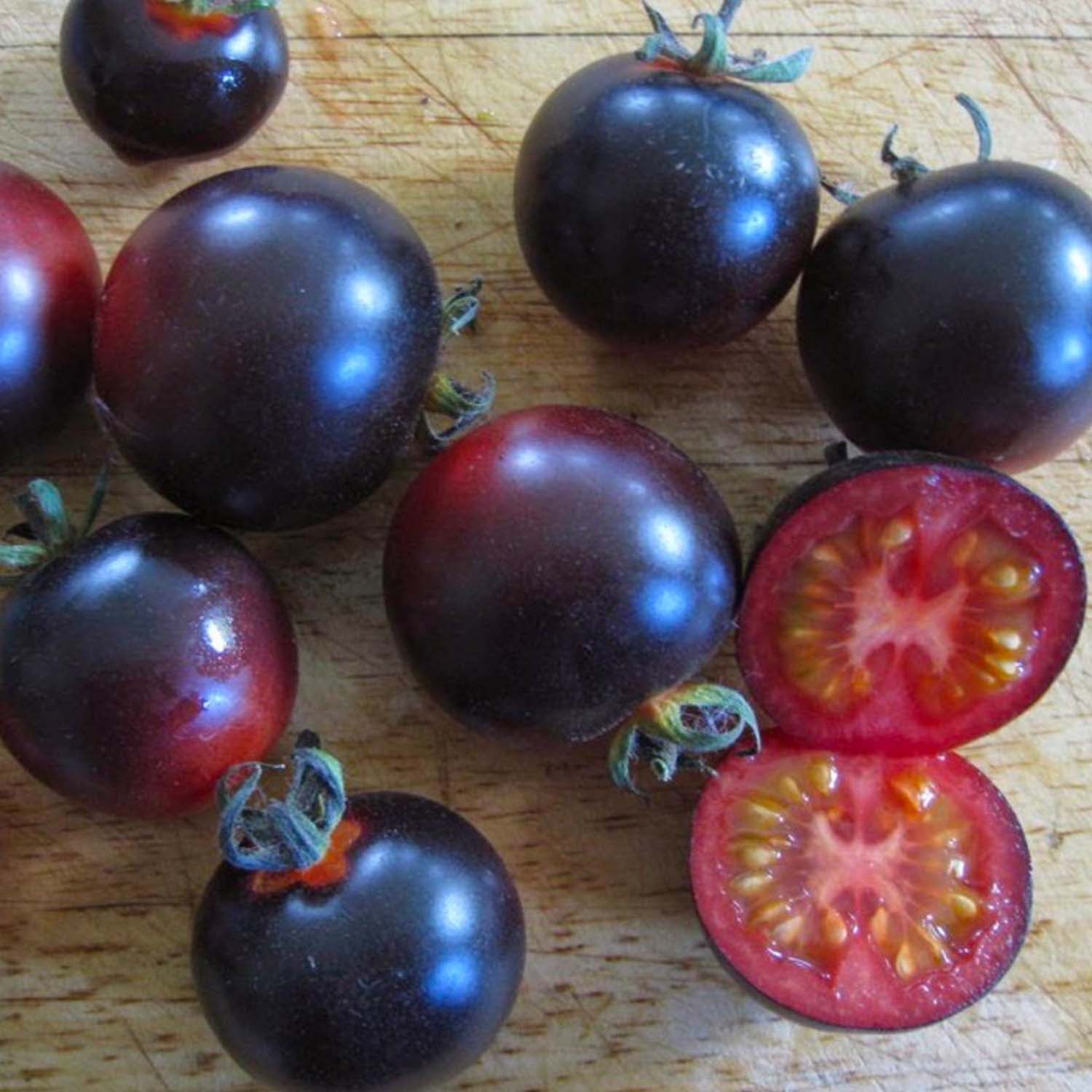 The Dancing with Smurfs Tomato is a whimsical and flavorful variety that adds a playful touch to any garden and culinary creation. These indeterminate tomatoes are known for their small to medium size and their vibrant, eye-catching appearance. The skin of Dancing with Smurfs tomatoes showcases a striking mix of blue, purple, and red hues, resembling the colors of the iconic Smurfs. Beyond their visual appeal, these tomatoes offer a delightful taste experience with a sweet and slightly tangy flavor, making them perfect for salads, snacking, and adding a colorful twist to dishes.