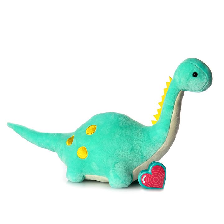 The Dinosaur Kit includes a 15″ stuffed dinosaur and an easy-to-use heart-shaped recorder. The dinosaur is perfect to cuddle, made with a soft fleece-like material with poly fiber and a velcro closure in the back where the recorded heartbeat or message is secured.