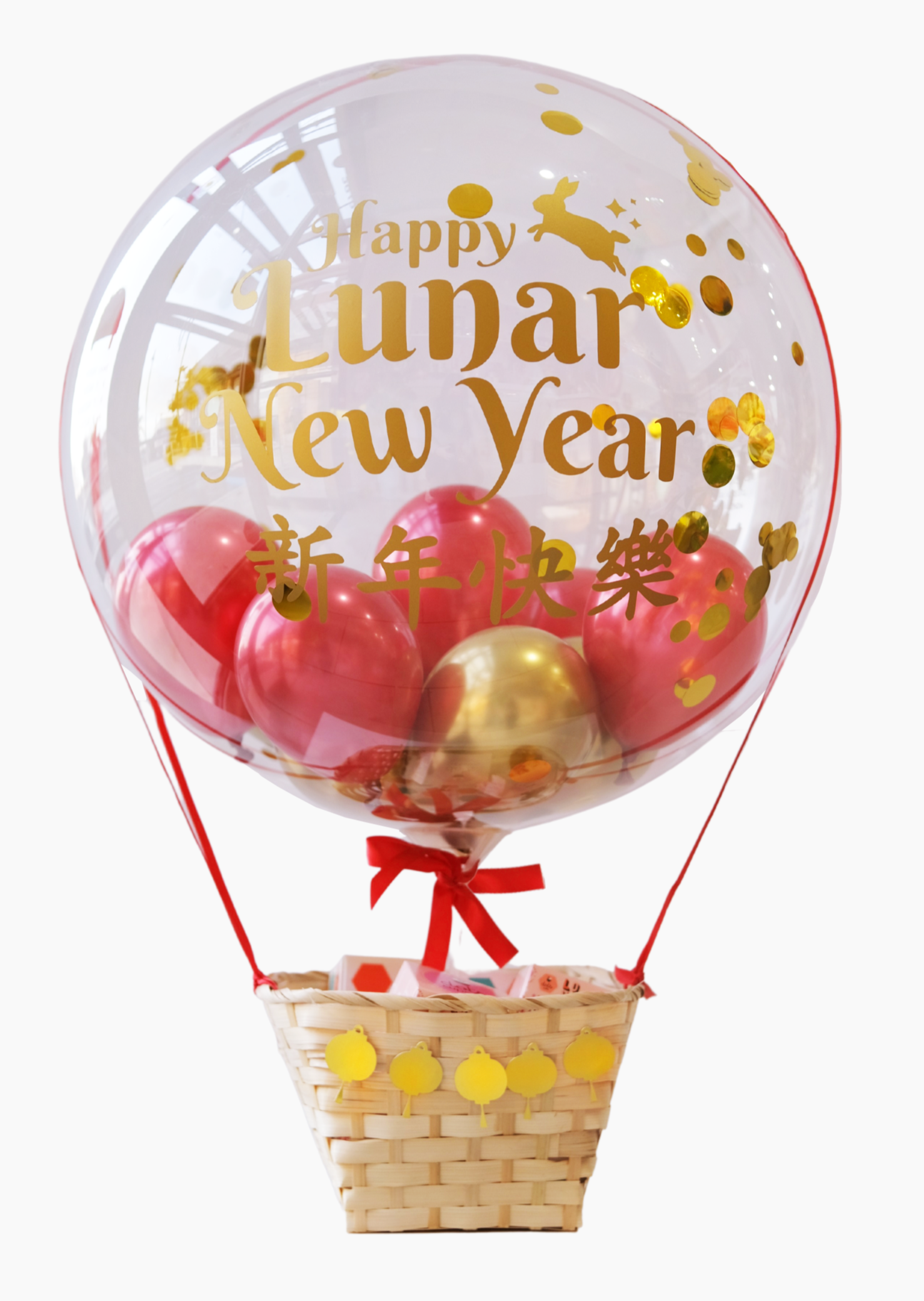 Happy Lunar New Year! 新年快樂 ! Celebrate the year of the Dragon with our signature hot air balloon. This balloon will be a hit at your family gathering sitting on a tabletop. Available with 8 mini cupcakes and chocolate gold coins (or without if you want to put your own treats inside!)