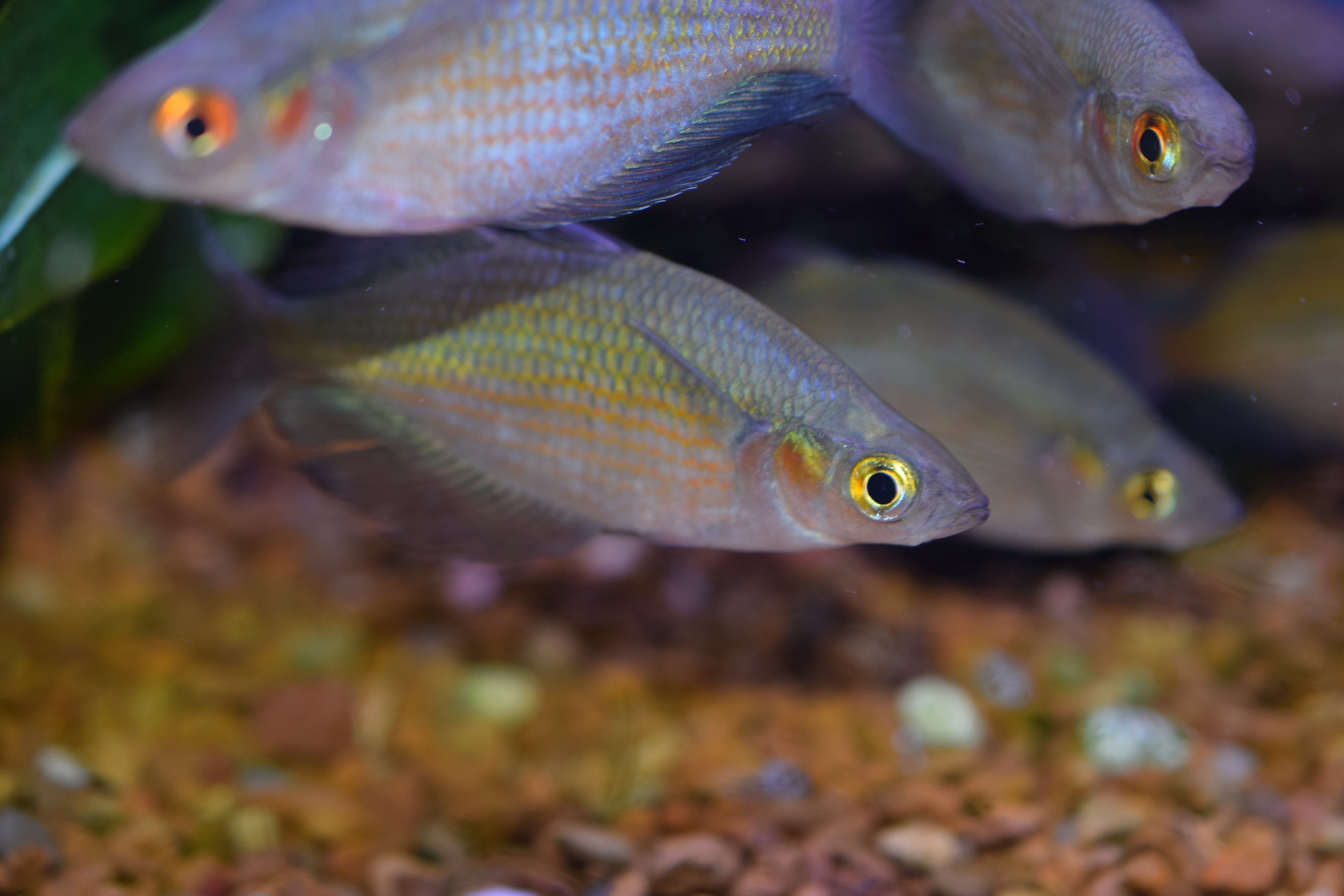 The Red Dragon Rainbow is an active and colorful fish that mixes well with some peaceful and most semi aggressive communities. They get an awesome green coloration with bits of bright red throughout the body. As they mature, they will develop long feathery fins.