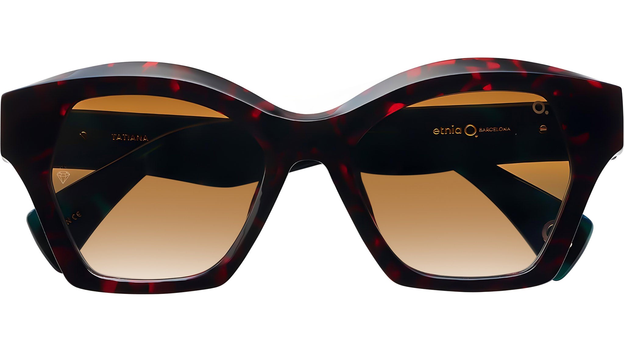 Etnia Barcelona Tatiana square acetate sunglasses in red havana with brown gradient lens. Model code: TATIANA 53S. Color code: BXGR. Authorised Etnia Barcelona Online Reseller. Your glasses will come including the original case and accessories and will be covered by 12 month global warranty.