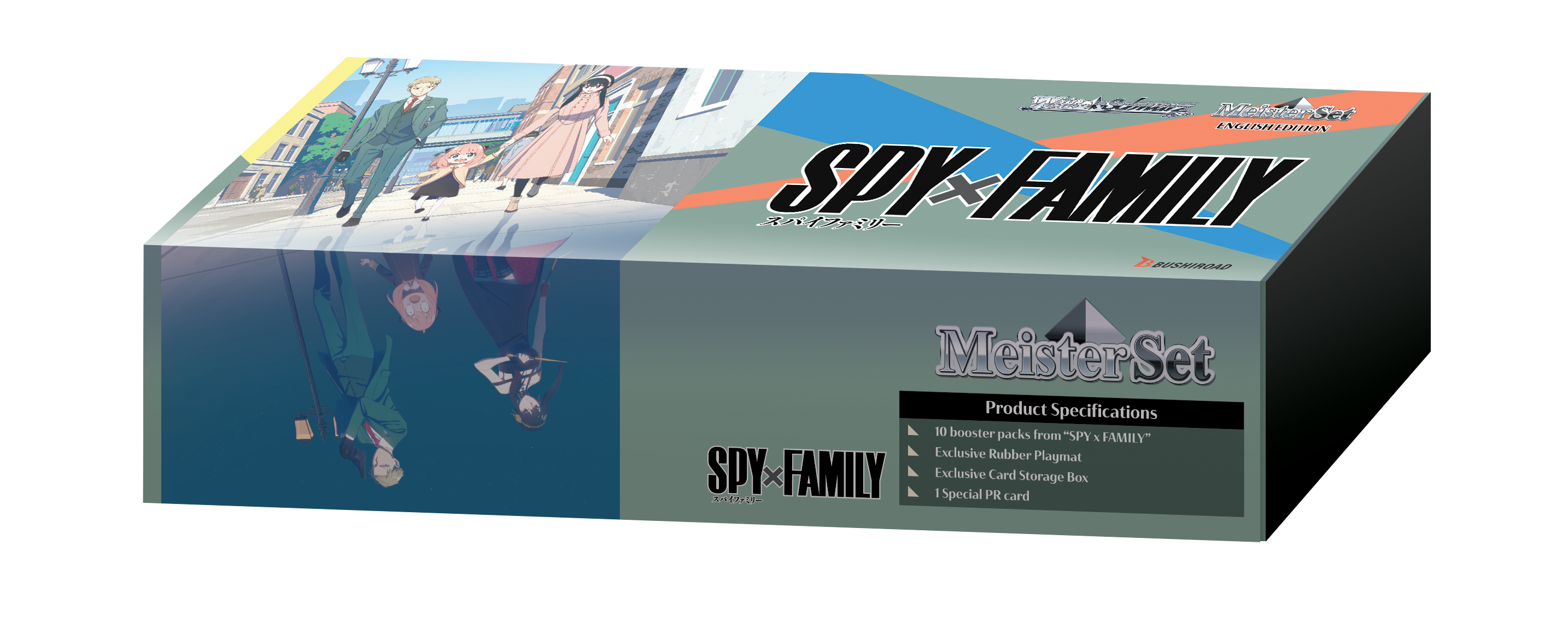The SPY x FAMILY Meister set comes with booster packs as well as customized accessories that will enhance your gameplay experience as well as offer protection and storage to your card collection. Each set also comes with a special promo pack with a special PR card inside!