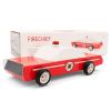 Woodie car by Candylab Toys. An iconic midcentury shape with walnut veneer panelled sides and Candylab rubber tyres. Features a magnet embedded in the roof, and a surfboard that snaps onto it.