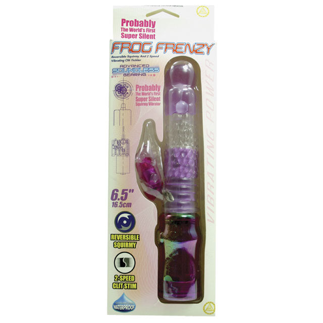 Frog Frenzy. Textured Waterproof Squirmy Vibrator with Clit Stimulator. Multi-Speed. Lavender.