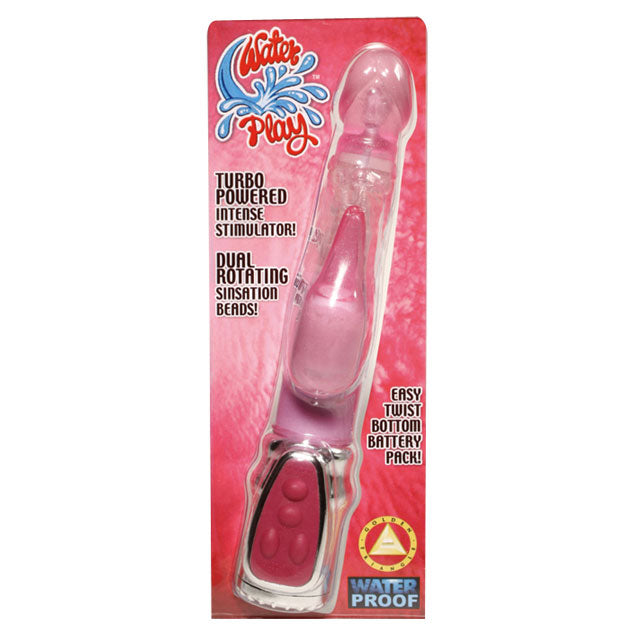 Water Play Rotating Vibe with Clit Stimulator. Waterproof and Multi-Speed. Pink.