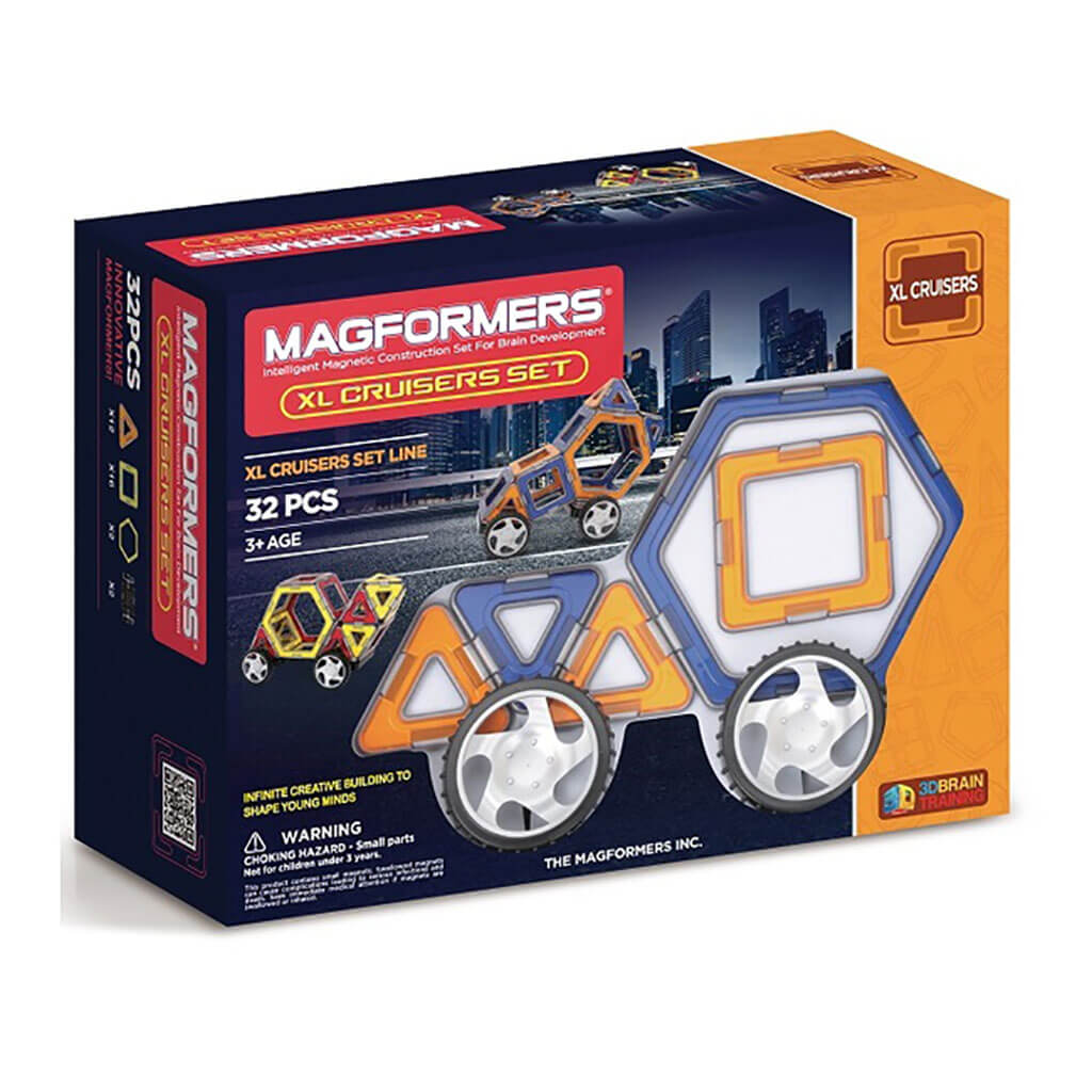 Build super quick cars with Magformers lightweight XL Cruisers Car Set! Let your imagination run wild and utilize and combine hexagons, triangles and squares to build unique cars!